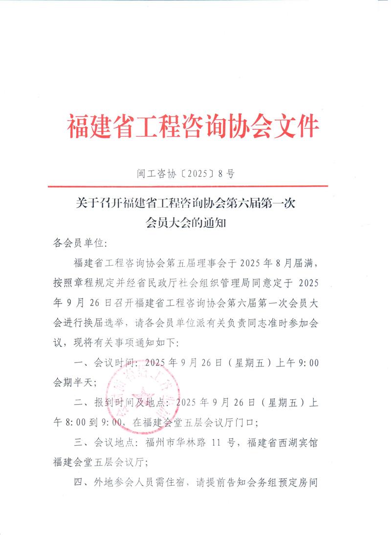 ¹ØÓÚÕÙ¿ª¸£½¨Ê¡¹¤³Ì×ÉѯЭ»áµÚÁù½ìµÚÒ»´Î»áÔ±´ó»áµÄ֪ͨ