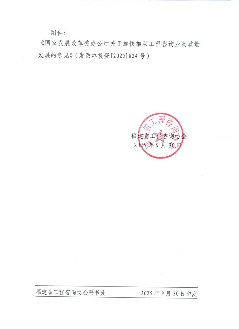 福建省工程咨询协会关于转发国家发展和改革委员会办公厅“关于加快推动工程咨询行业 高质量发展的意见”的通知