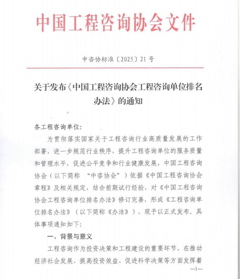 转发《中国工程咨询协会工程咨询单位排名办法》的通知