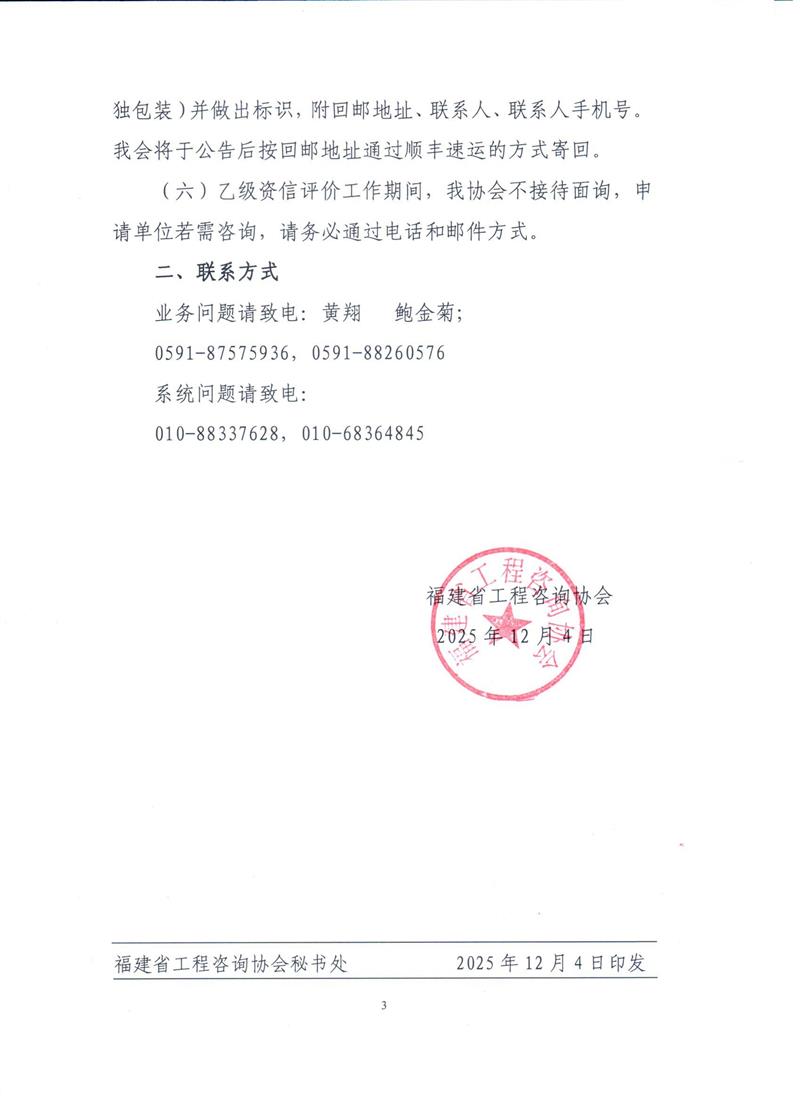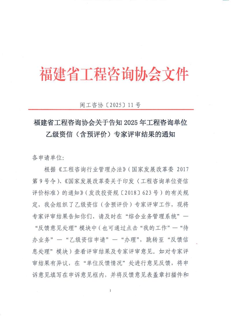 福建省工程咨询协会关于告知2025年工程咨询单位乙级资信(含预评价)专家评审结果的通知