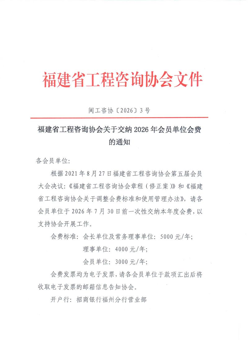 福建省工程咨询协会关于交纳2026年会员单位会费的通知